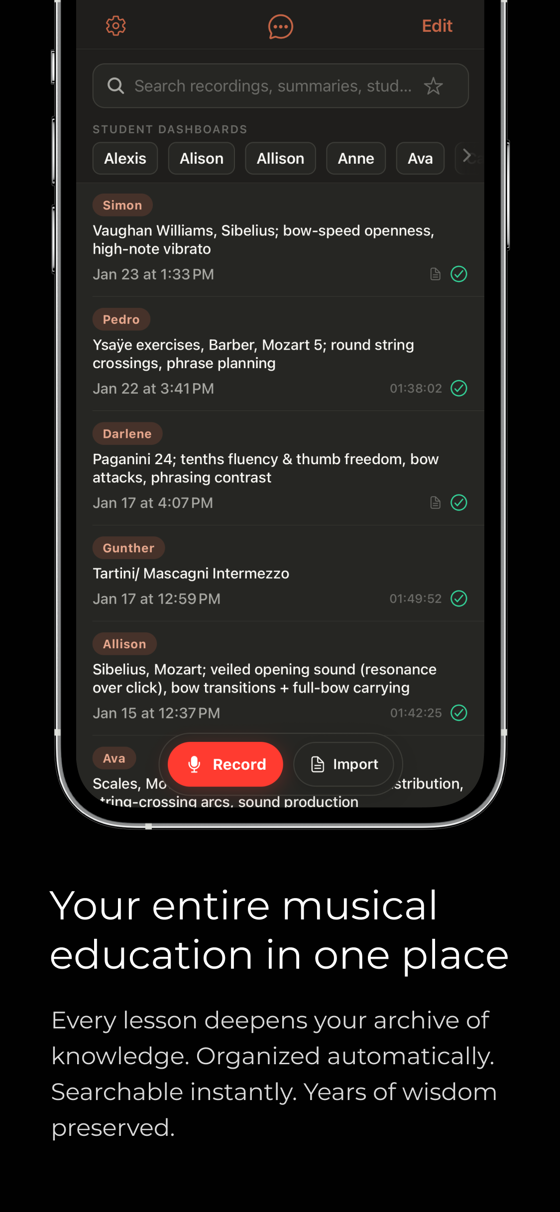 - Your students actually rememberEvery lesson becomes a permanent, searchable record. Your advice stays at their fingertips — exactly as you said it.